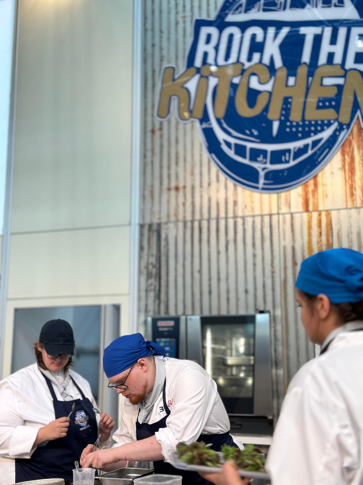 Besonders spannend war erneut der Wettbewerb „Young Chef Battle“: Zum dritten Mal nahmen Jungköchinnen und -köche aus dem 2. und 3. Ausbildungsjahr des BBZ Grevenbroich daran teil. Die Teams mussten innerhalb von vier Stunden aus einem vorgegebenen Warenkorb ein kreatives 3-Gang-Menü entwickeln und es anschließend einer Fach- und Gästejury präsentieren. Obwohl sich unser Team nur knapp geschlagen geben musste, konnte sich in diesem Jahr das Team „Fulda“ durchsetzen und fährt damit zum Finale nach Berlin, wo die vier besten Vorrunden-Teams erneut gegeneinander antreten werden.