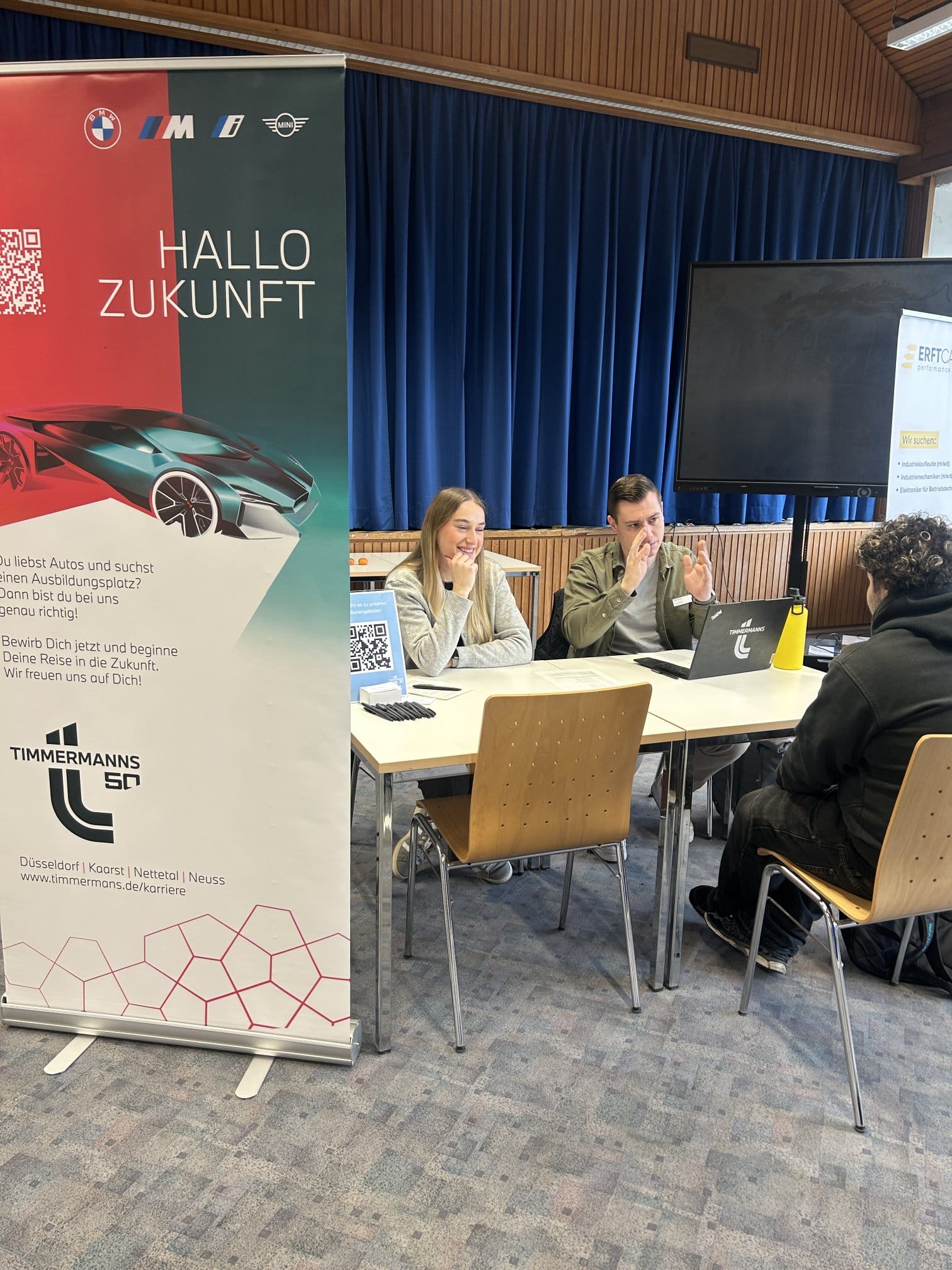 • Handel & Dienstleistung: Lidl und Norma stellten Wege im Einzelhandel und duale Studiengänge vor. Die Autohäuser Louis Dresen und BMW Timmermanns suchten Mechatroniker und Automobilkaufleute. In der Skihalle (Allrounder) standen Berufe in der Hotellerie und Gastronomie im Fokus.